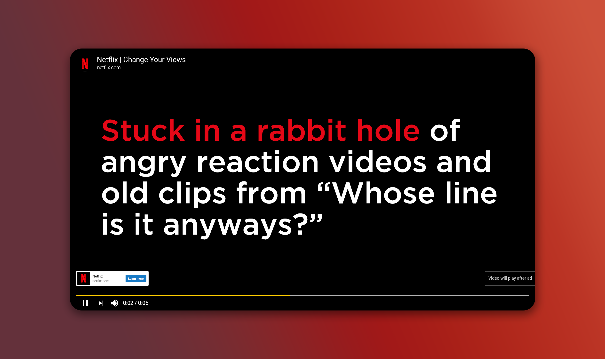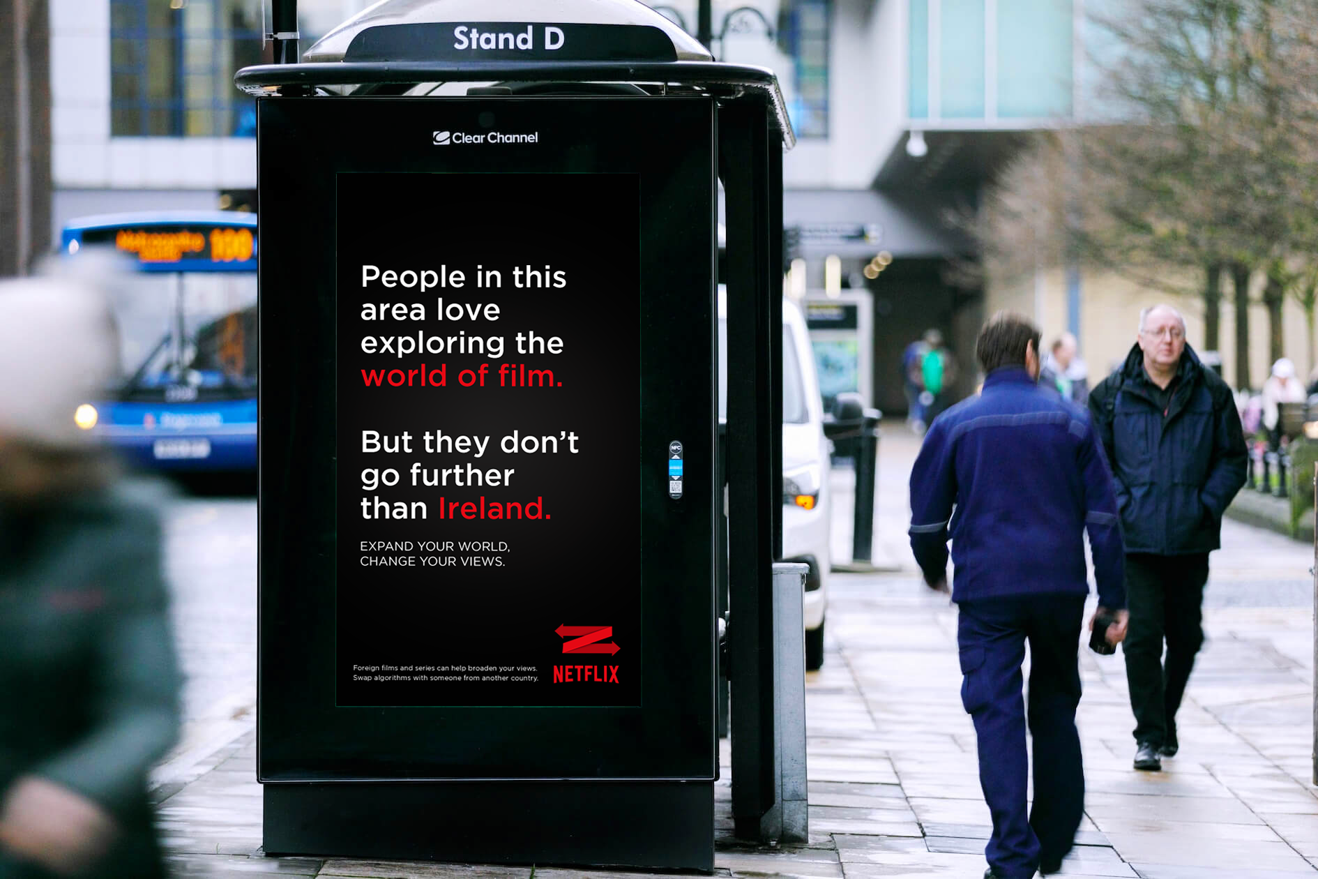 SOLUTION > Change Your Views - a Netflix campaign that lets users change their views with someone from a different part of the world. With the purpose of letting films and series broaden their perspective. Making the foreign more familiar.
